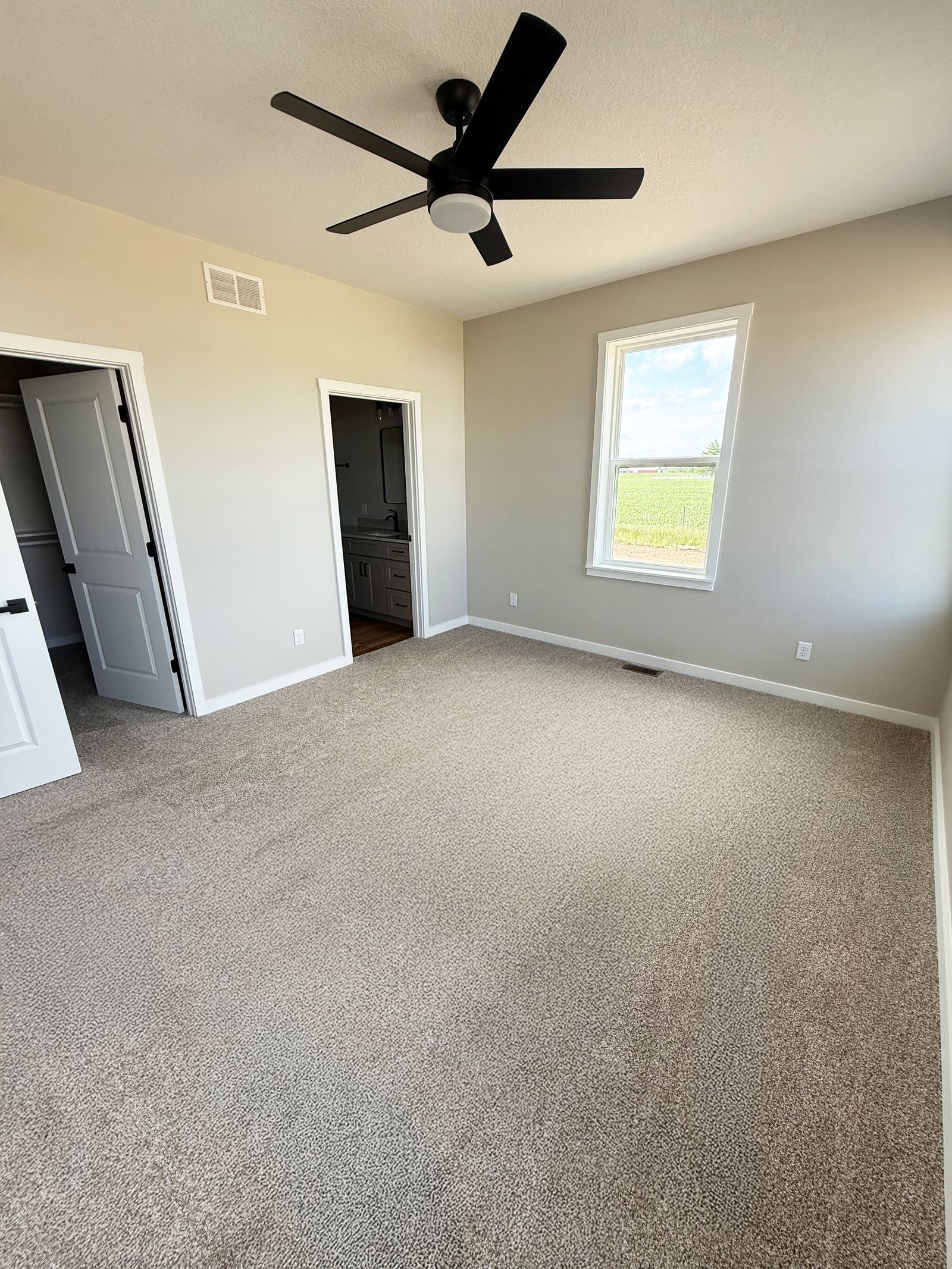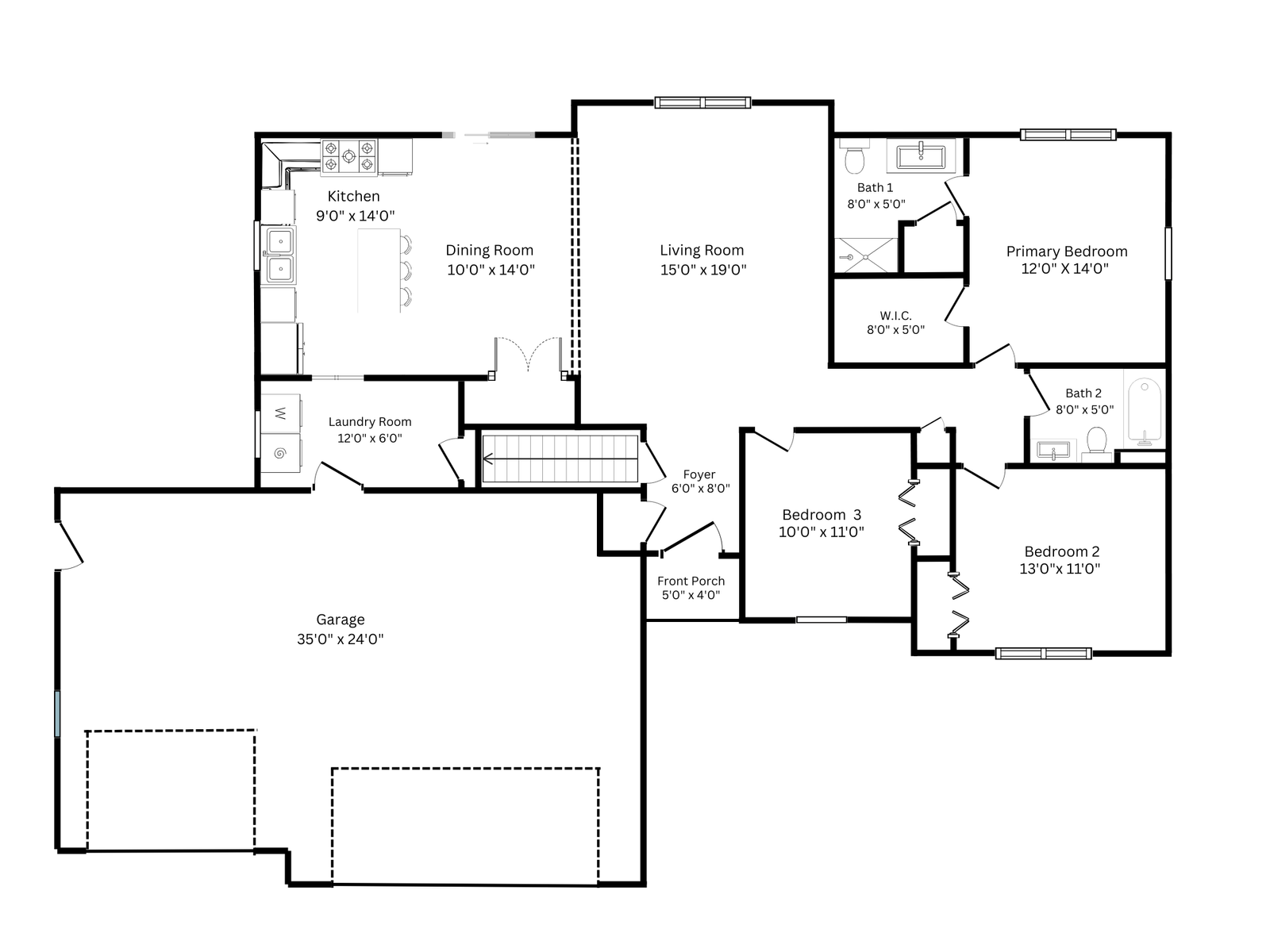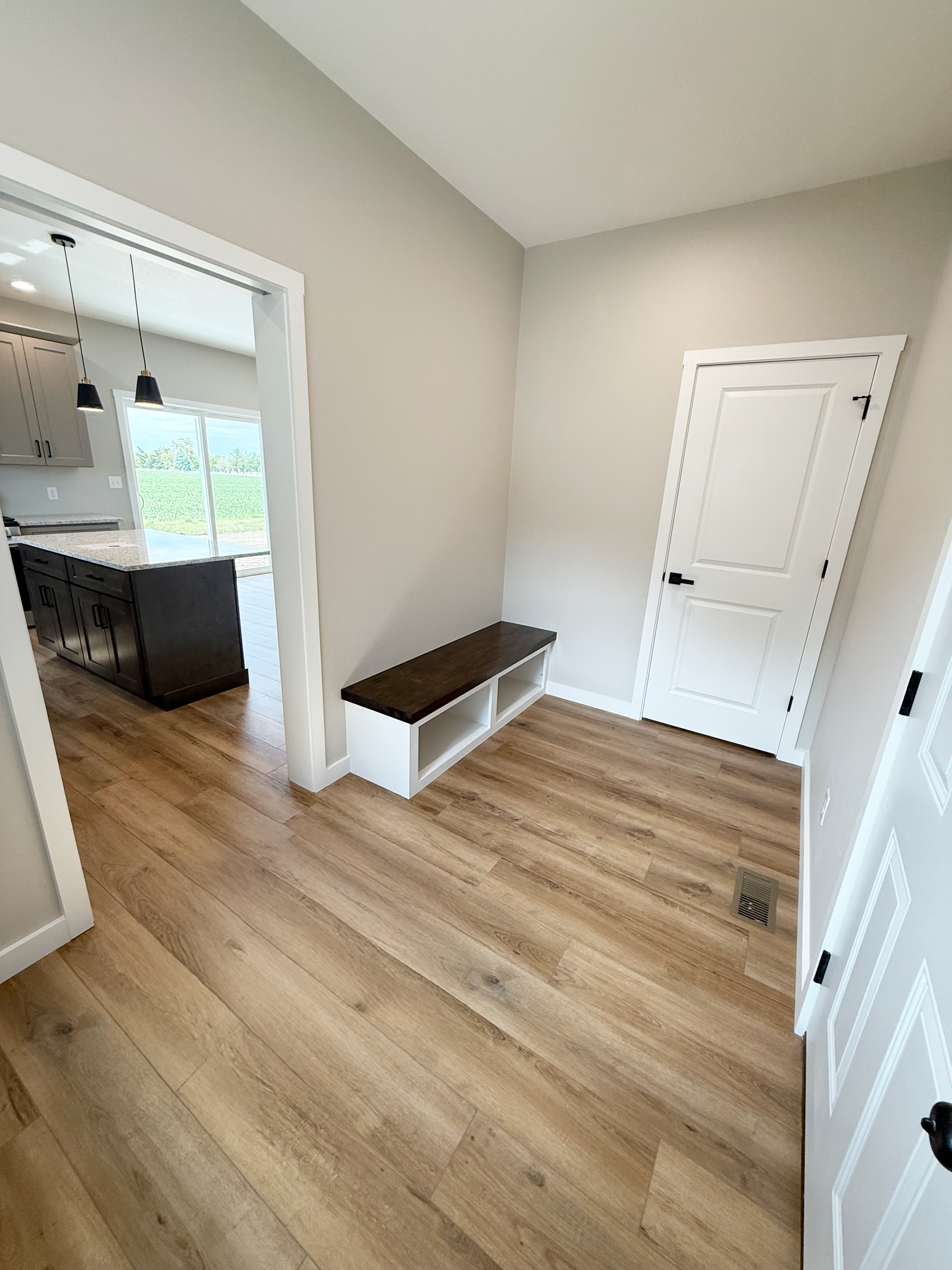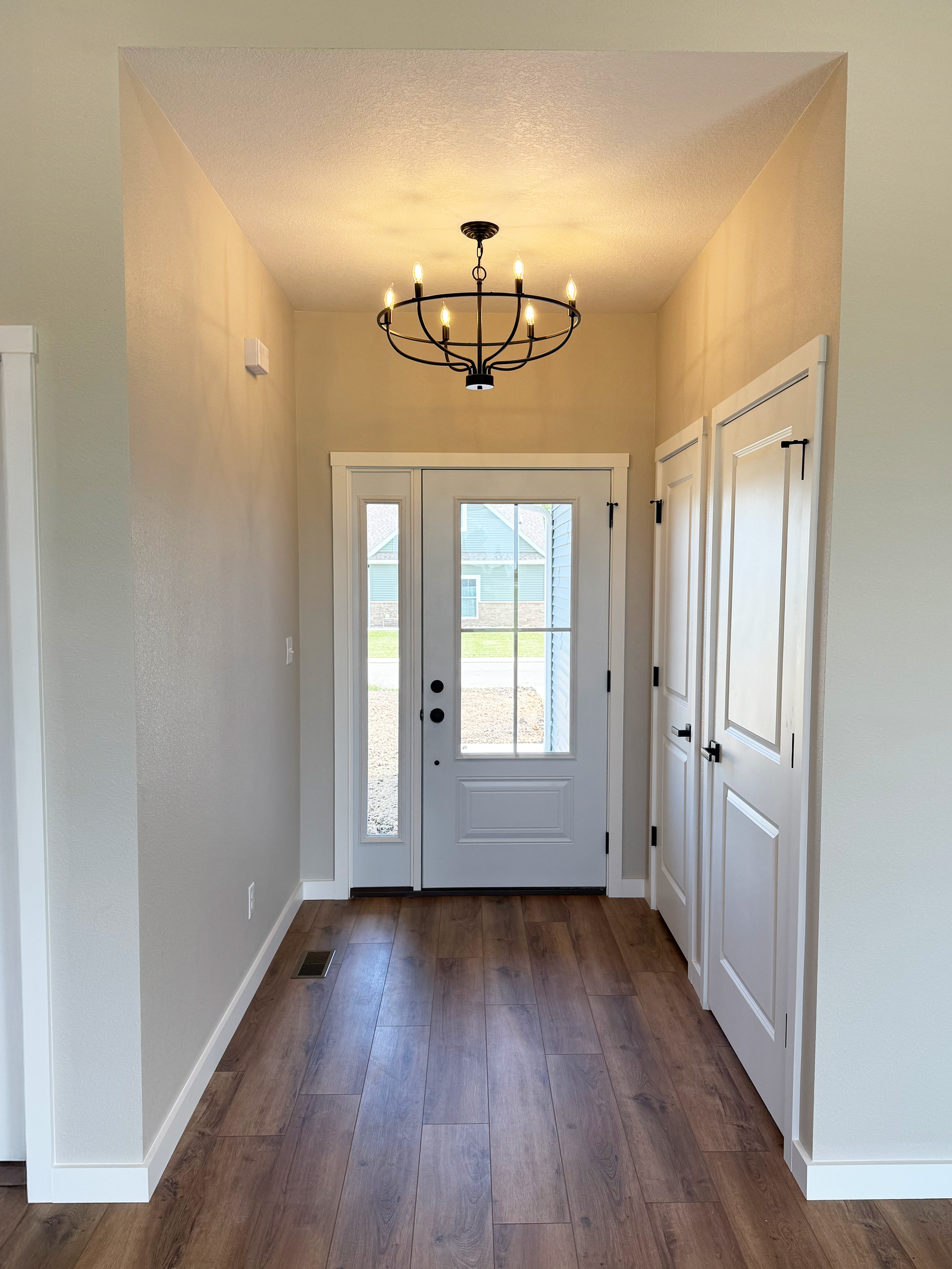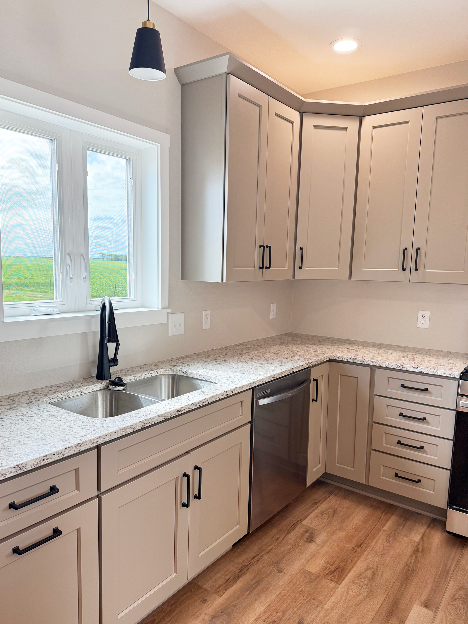 This custom one-story ranch features a striking dark exterior, spacious three-car garage, and a thoughtfully designed interior. Highlights include a vaulted ceiling in the living room, a custom walk-in pantry, and an unfinished basement ready for future expansion. A clean functional layout makes this home perfect for everyday living with room to grow.