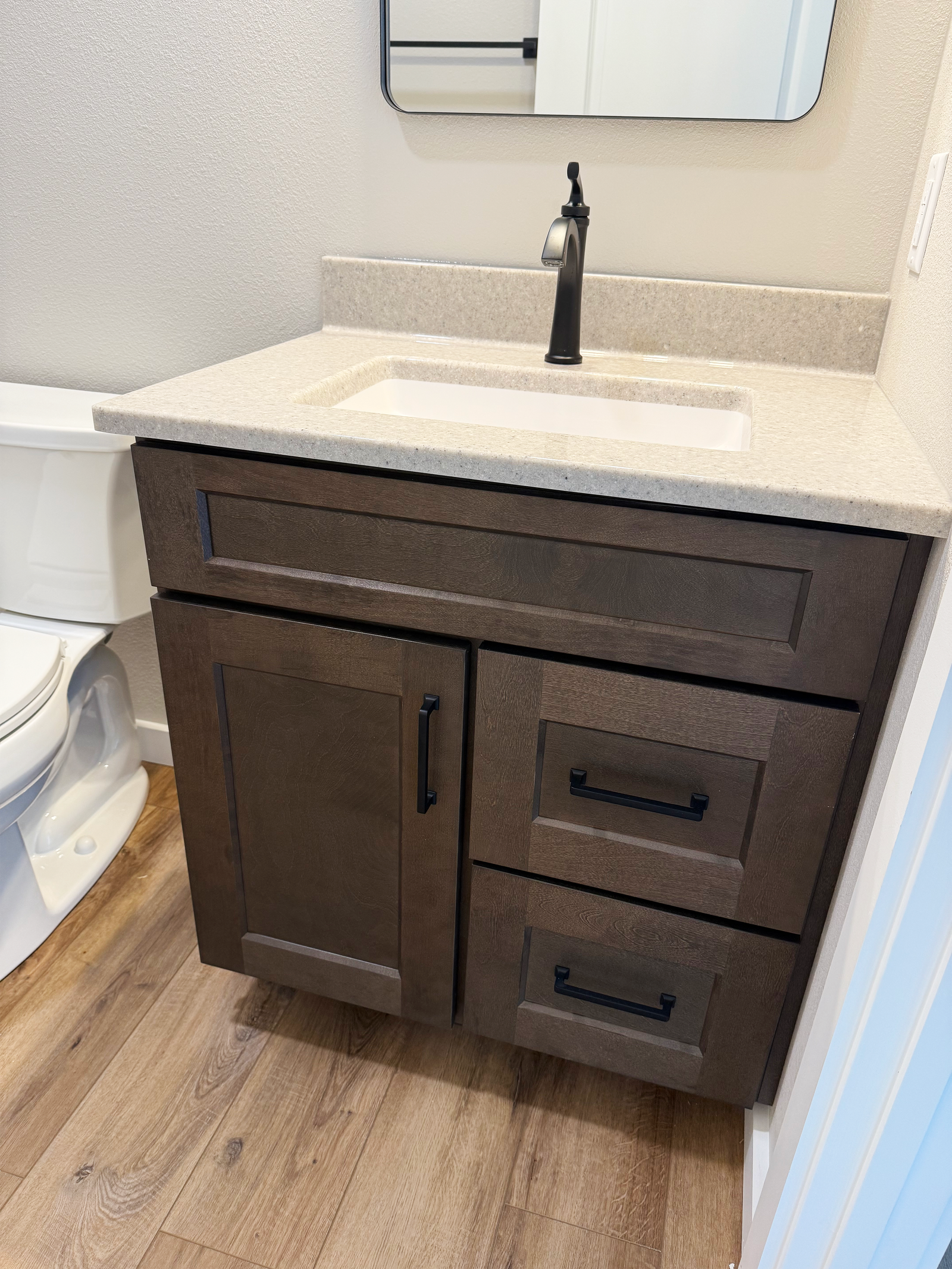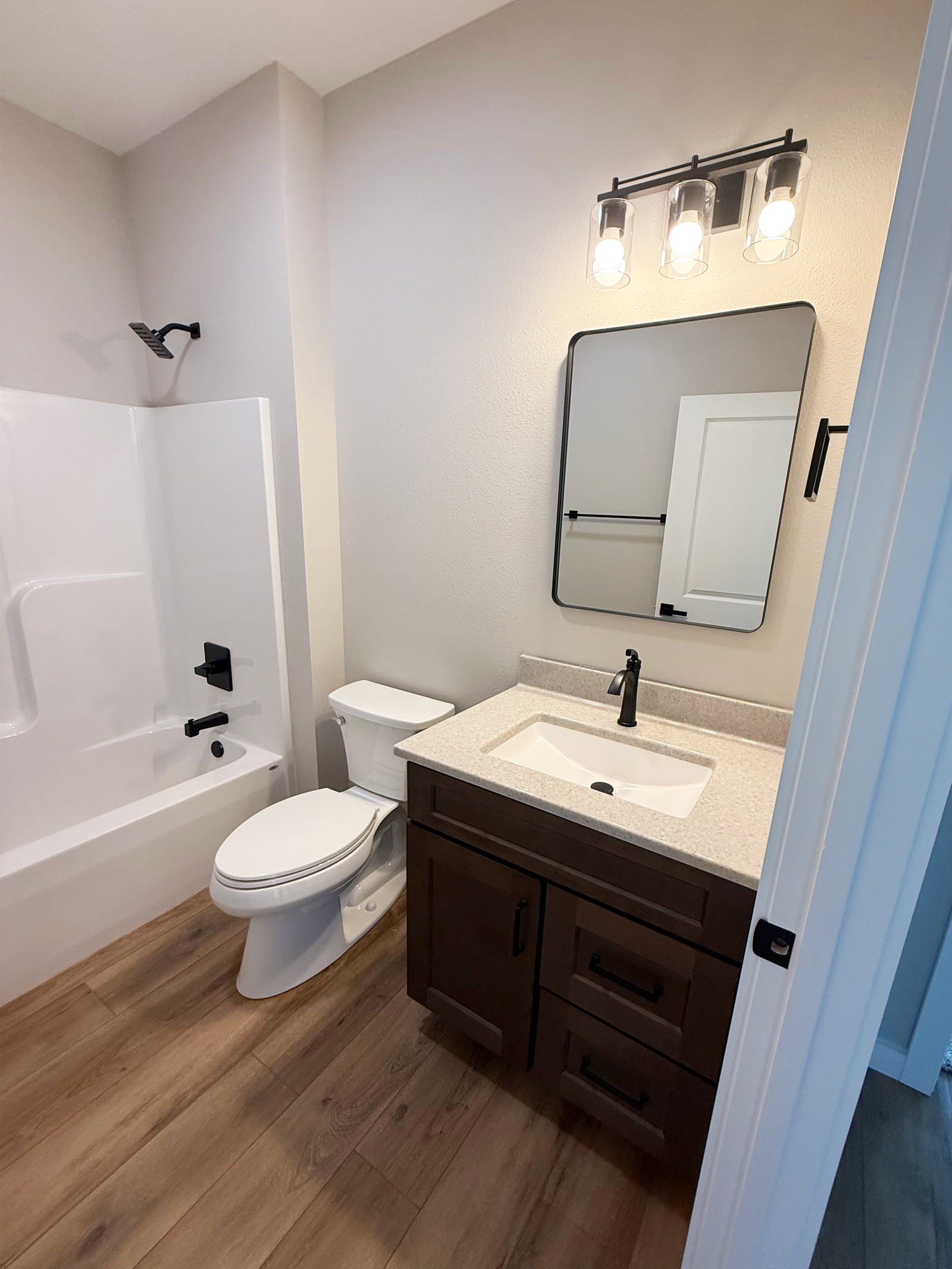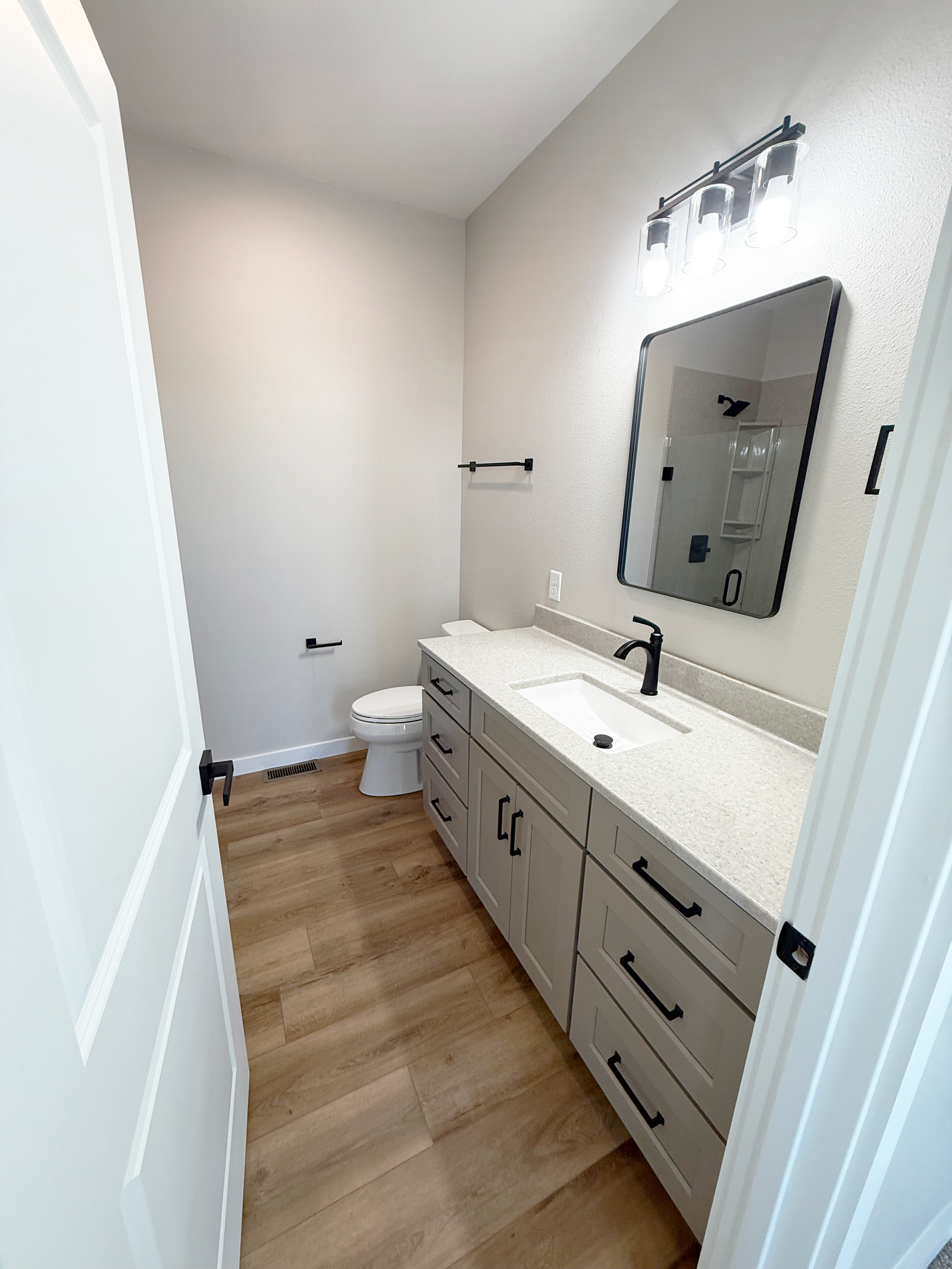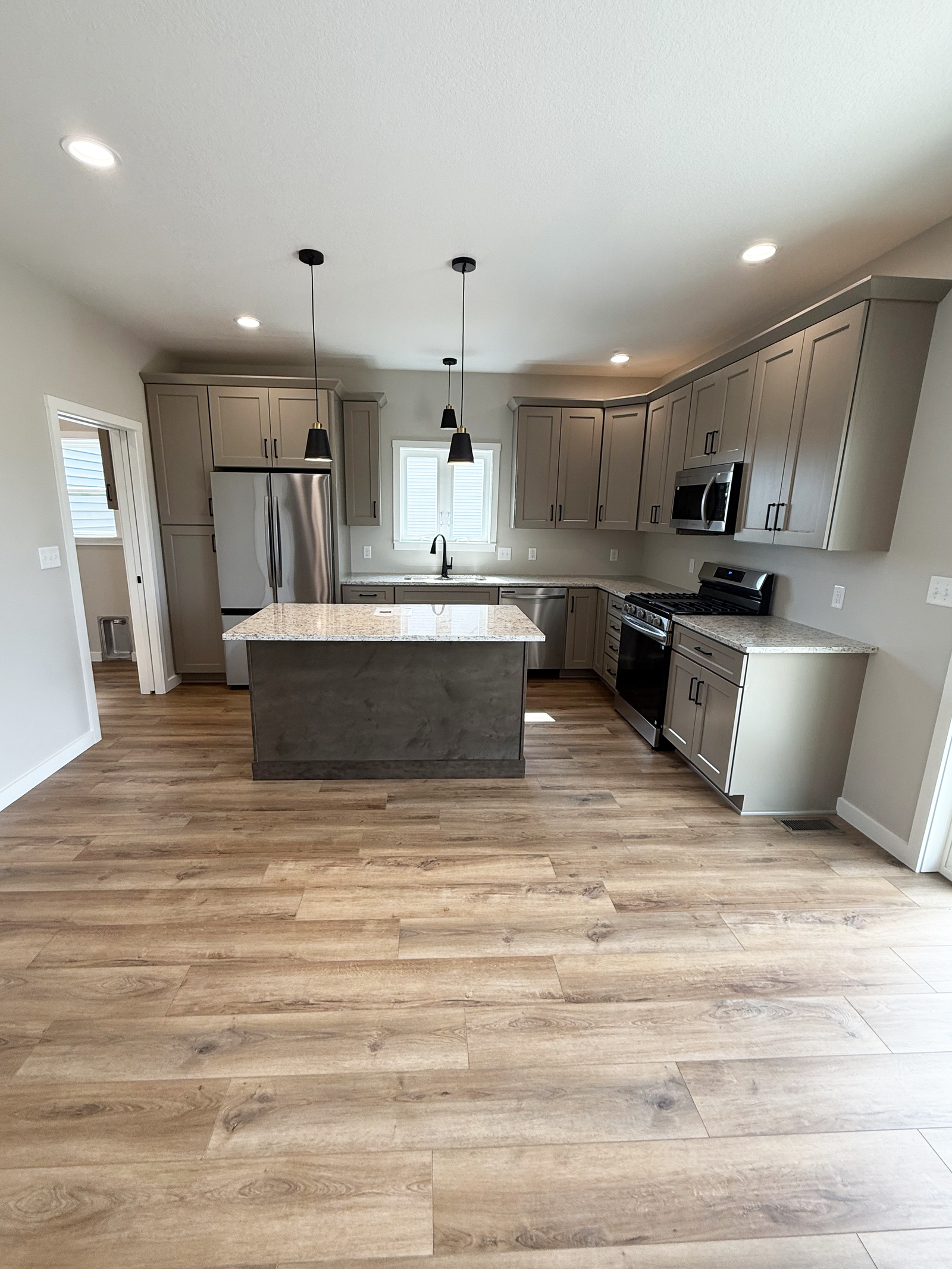 This custom one-story ranch features a striking dark exterior, spacious three-car garage, and a thoughtfully designed interior. Highlights include a vaulted ceiling in the living room, a custom walk-in pantry, and an unfinished basement ready for future expansion. A clean functional layout makes this home perfect for everyday living with room to grow.
